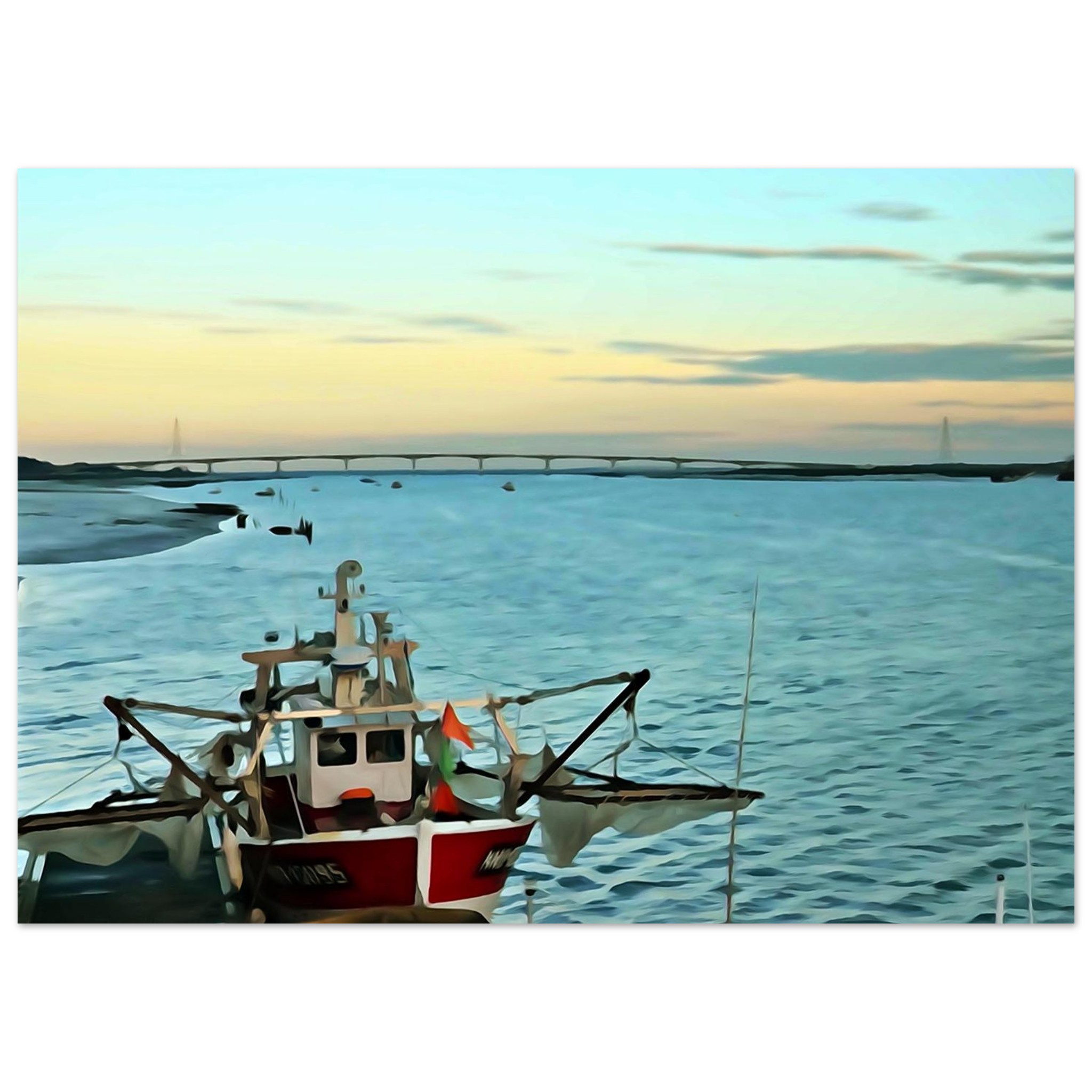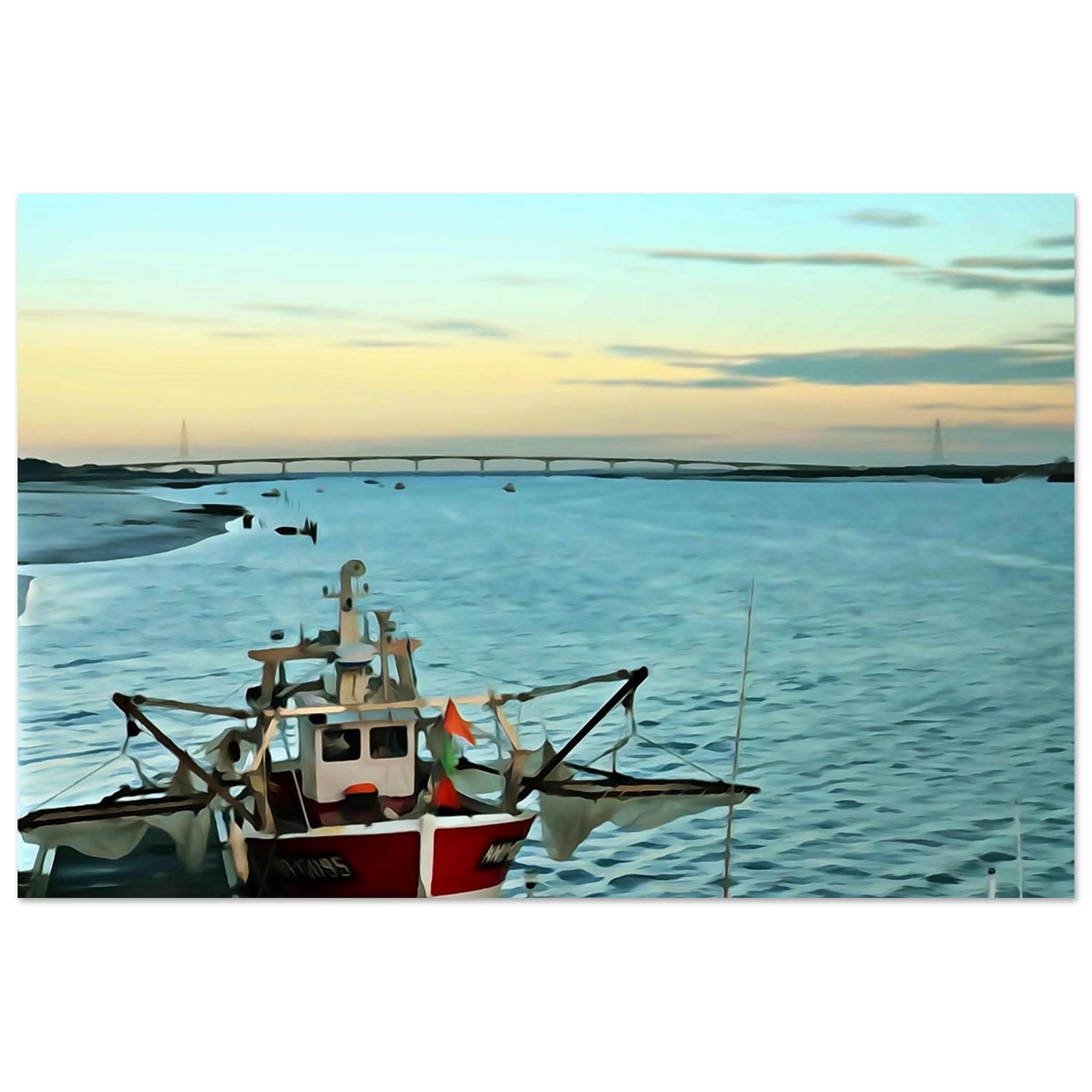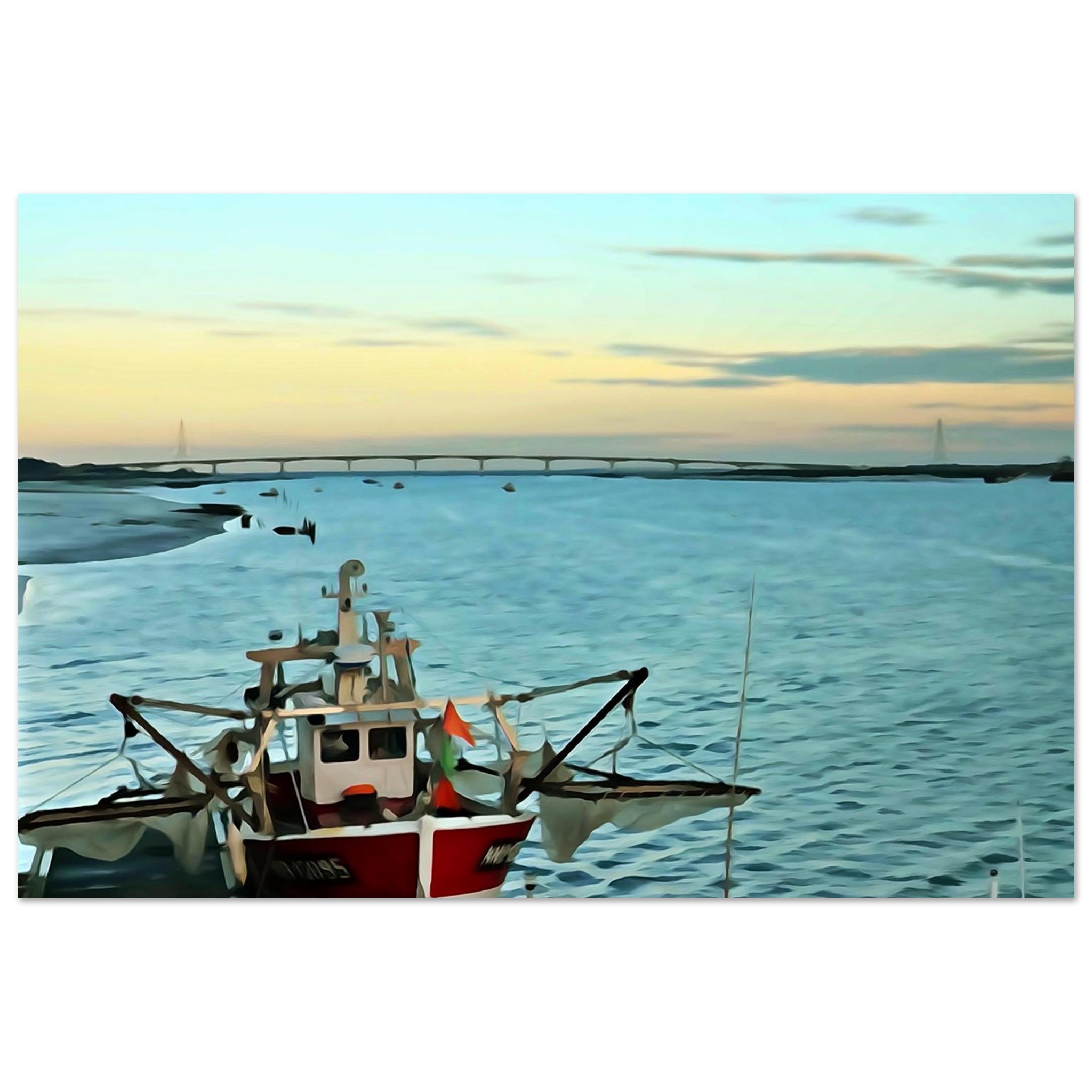 La Tremblade est ici représentée dans une ambiance matinale empreinte de sérénité. Cette œuvre murale met en avant la simplicité d’un paysage discret, loin du tumulte, comme une pause visuelle dans votre quotidien. Les couleurs vives mais nuancées, associées au rendu mat, créent un équilibre subtil entre présence et douceur.