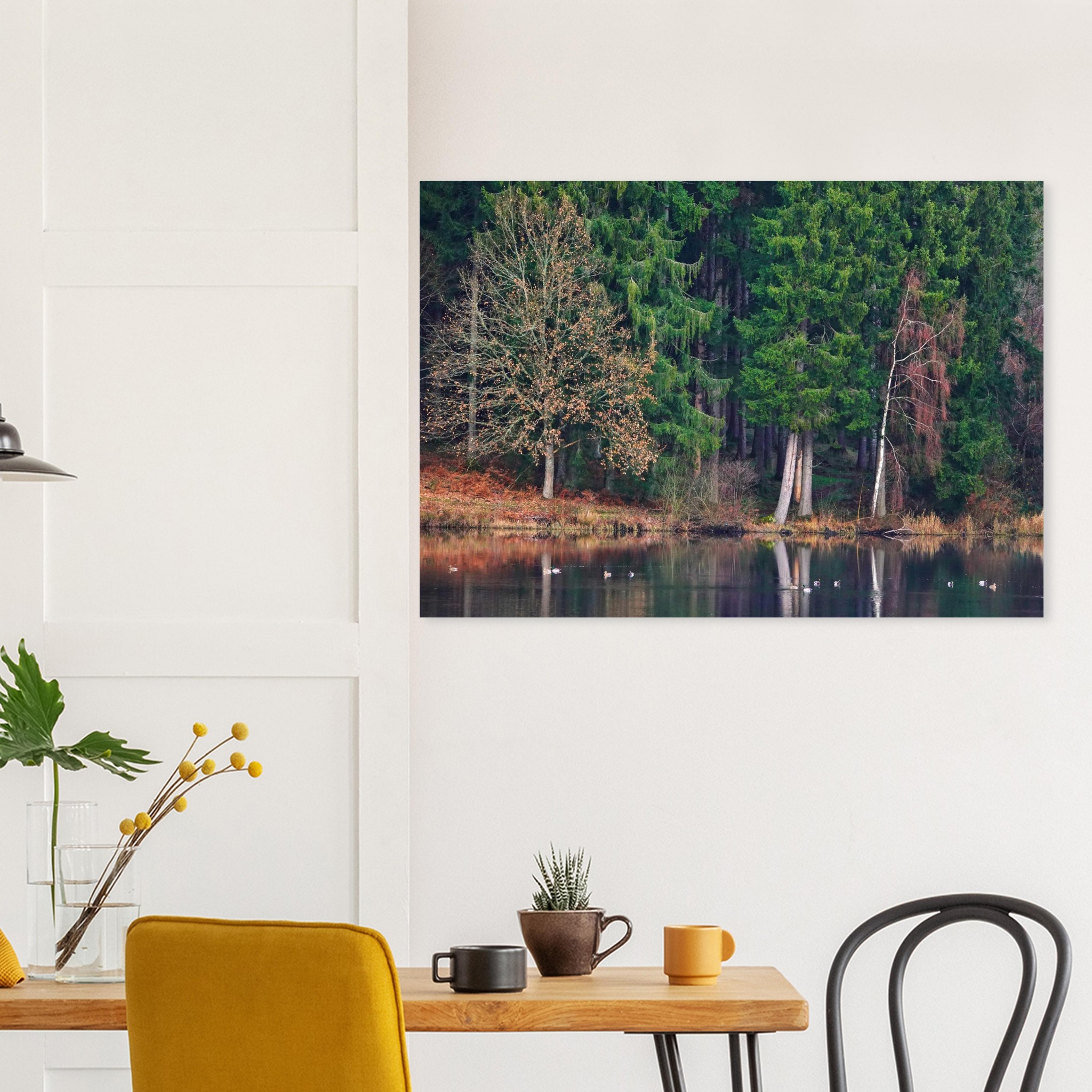 Quel que soit l’emplacement choisi, ce paysage de lac auvergnat et de forêt silencieuse devient une fenêtre ouverte sur une nature calme, transformant votre mur en œuvre d’art. Avec son impression DIBOND haut de gamme, ce tableau aluminium associe esthétique, qualité et longévité pour une décoration murale vraiment exceptionnelle.