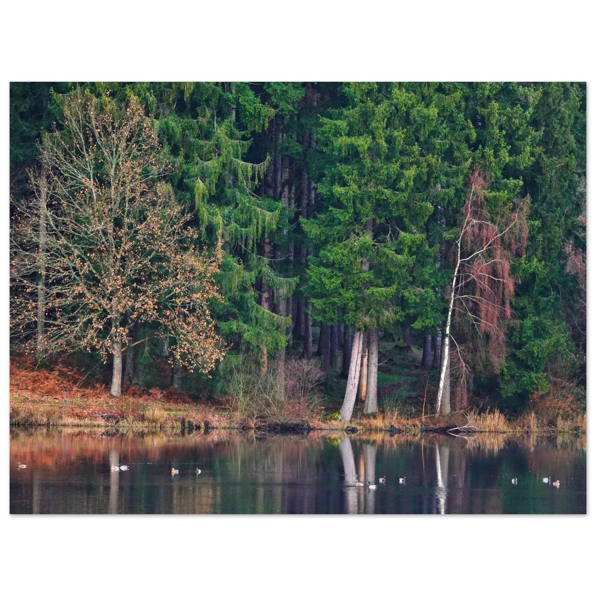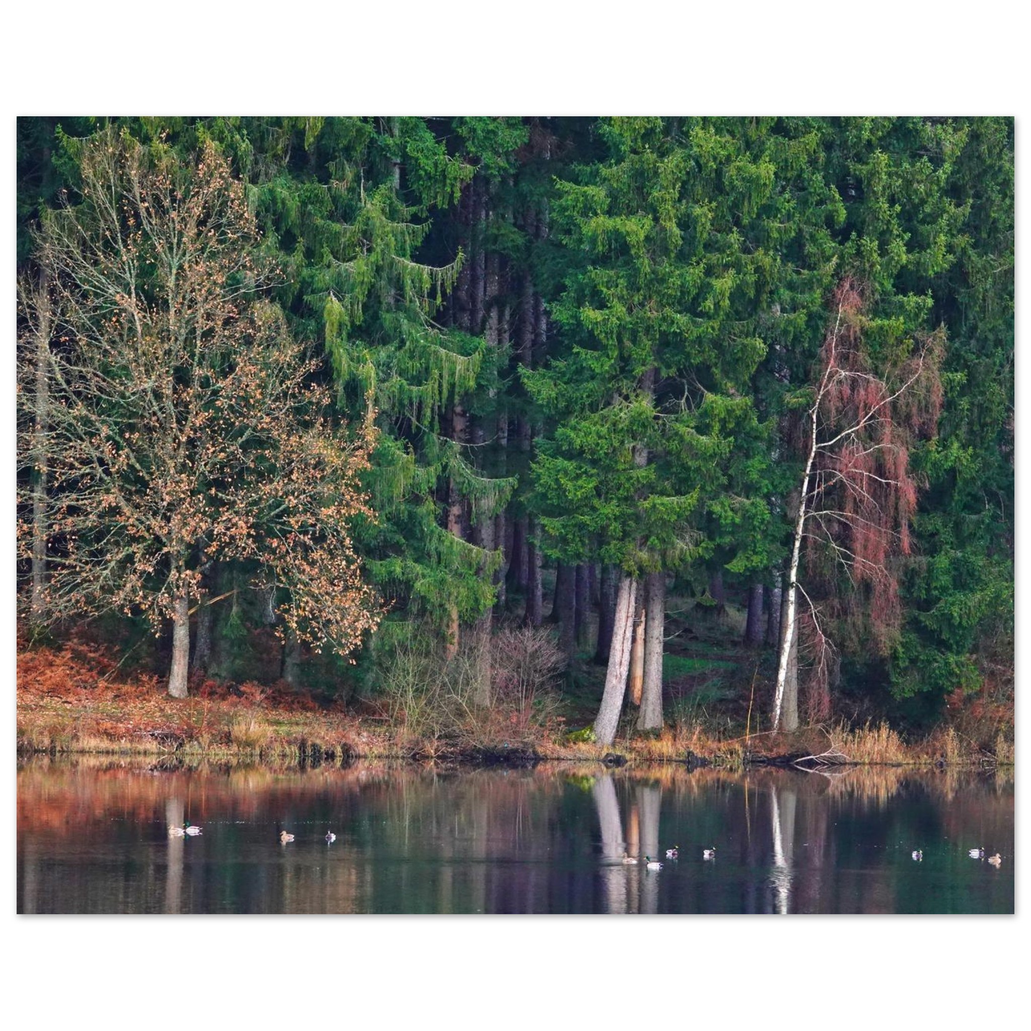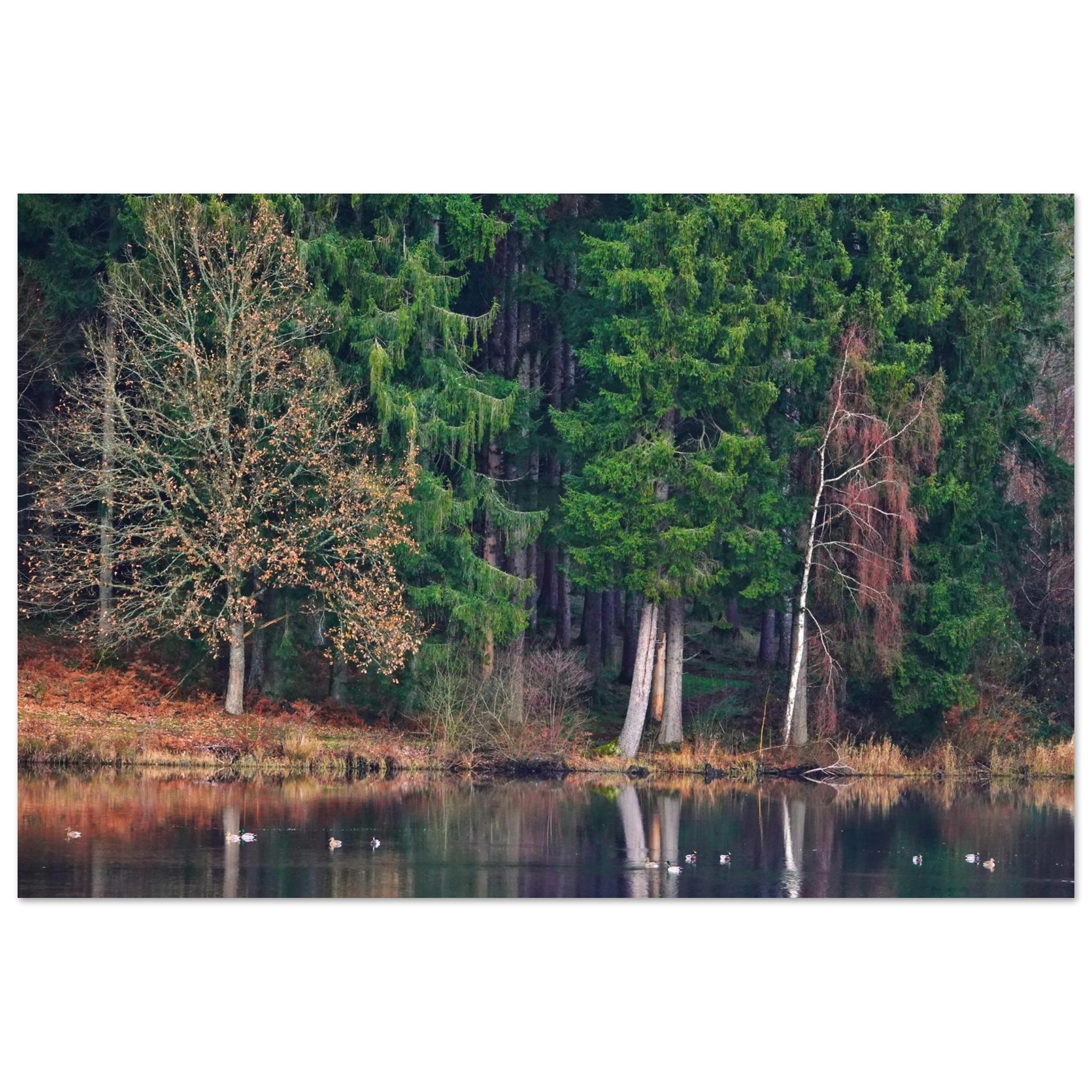 Caractéristiques du tableau aluminium Le lac Auvergnat tient la forêt comme une photographie silencieuse