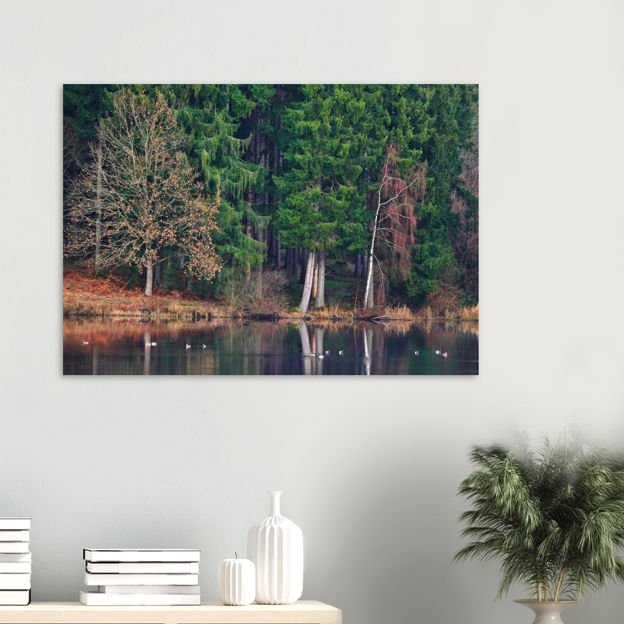 Ce tableau aluminium autour d’un lac auvergnat et de sa forêt s’adresse à ceux qui souhaitent créer une décoration murale haut de gamme, à la fois minimaliste et chaleureuse. Le thème de l’eau immobile et du reflet de la nature évoque le silence, le temps suspendu, la contemplation. Cela en fait un choix idéal pour un coin lecture, un salon épuré, une chambre d’hôtel ou un cabinet de consultation recherchant une ambiance rassurante et douce.
